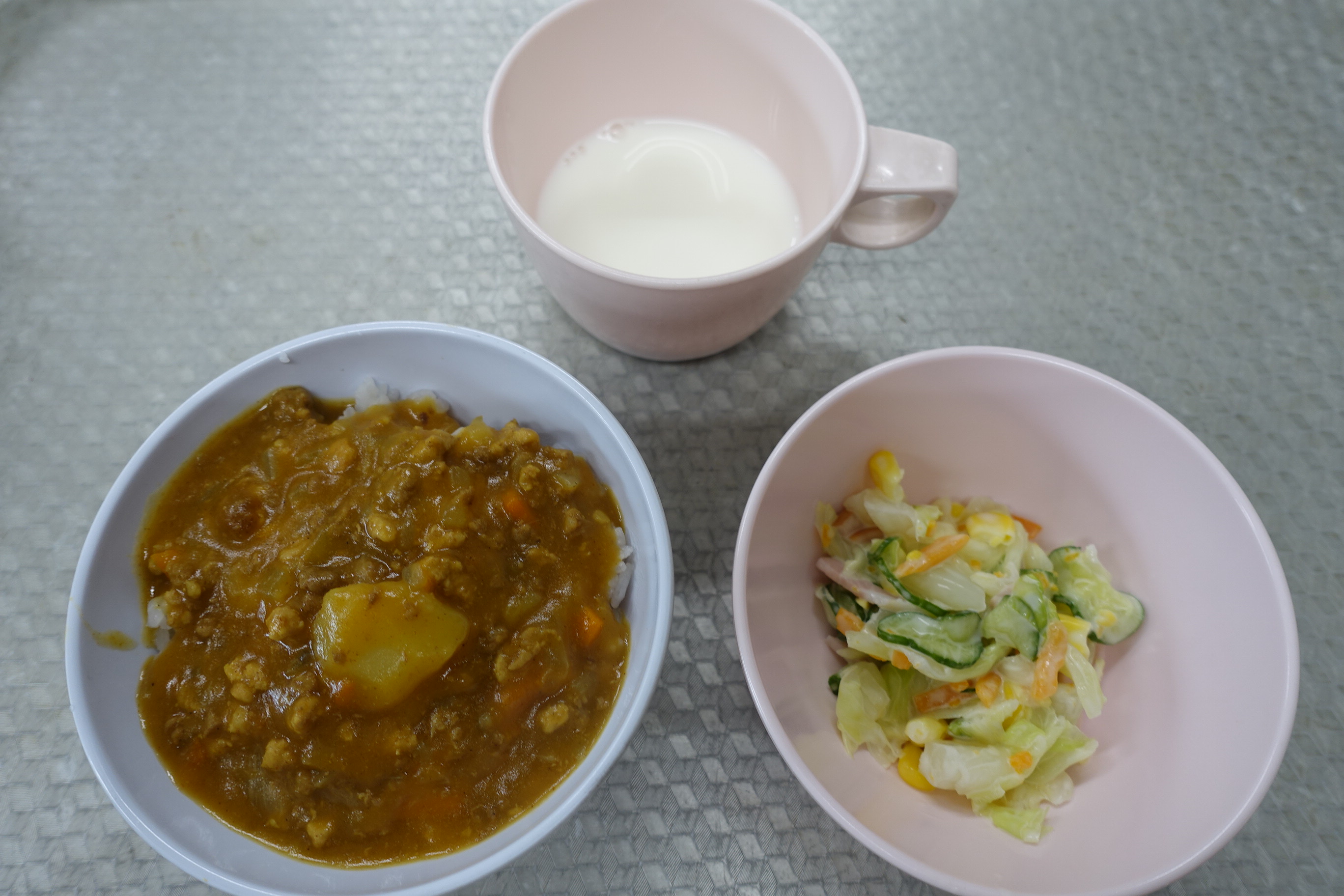 ミンチカレーライス フレンチサラダ 牛乳
