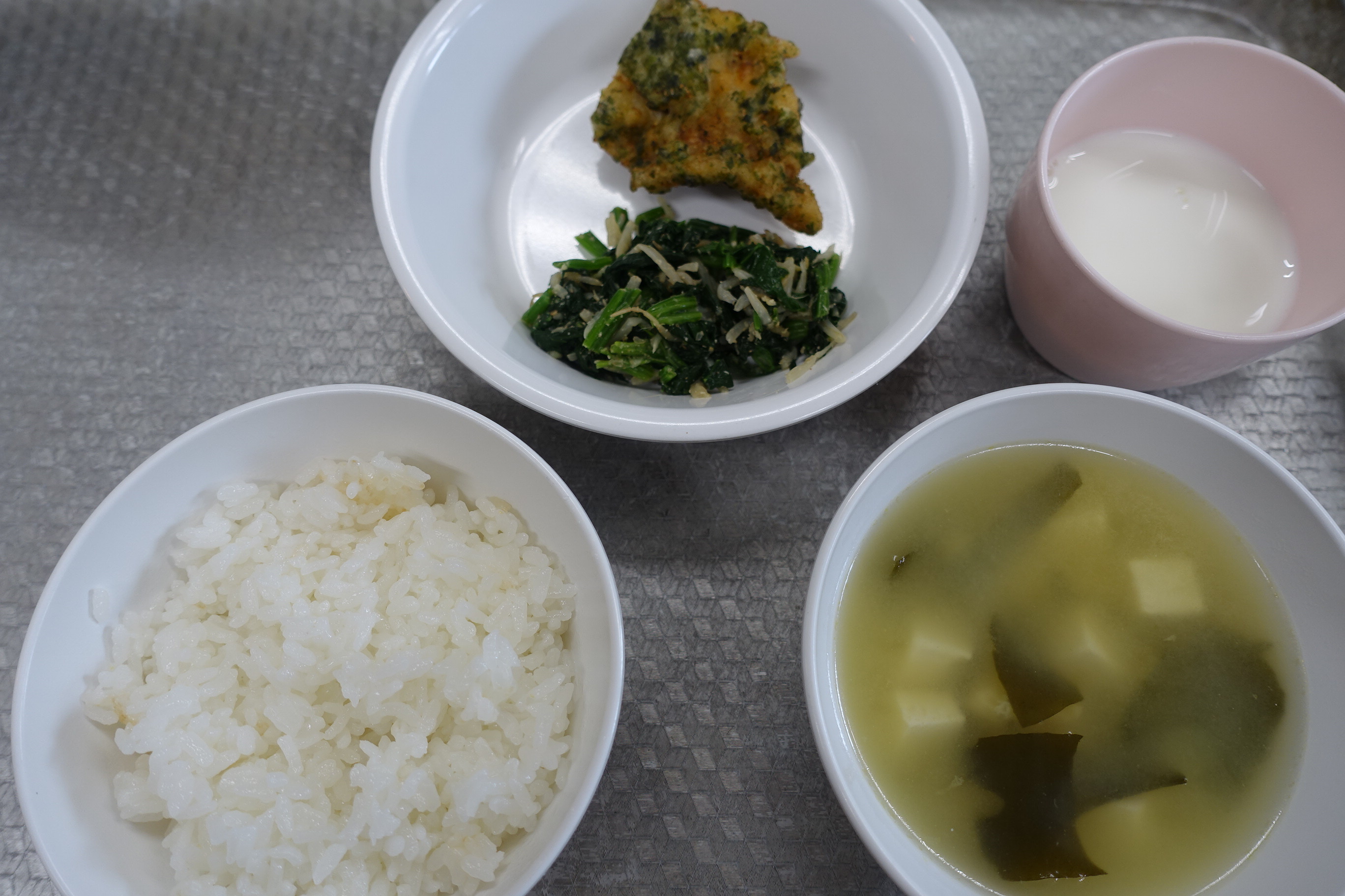 ごはん 魚の磯辺揚げ ごま和え みそ汁 牛乳