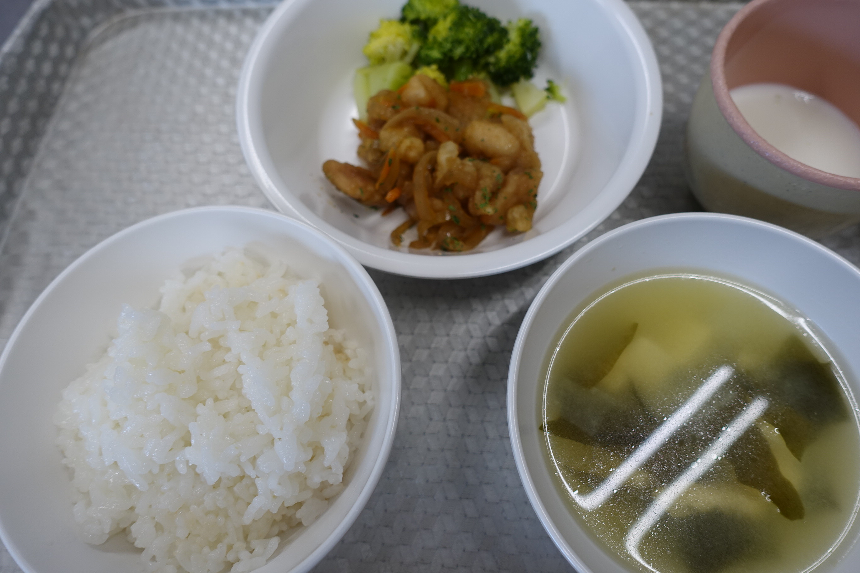 ごはん 鶏肉のマリネ ゆでブロッコリー だいこんのみそ汁 牛乳