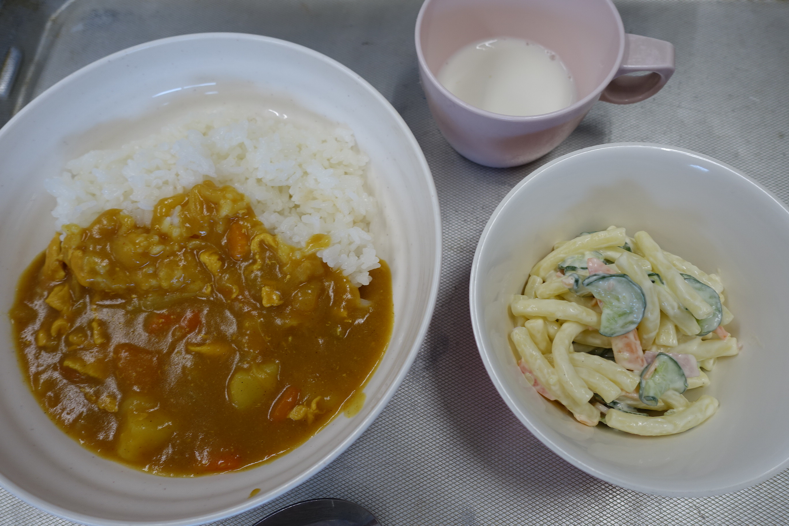 カレーライス マカロニサラダ 牛乳